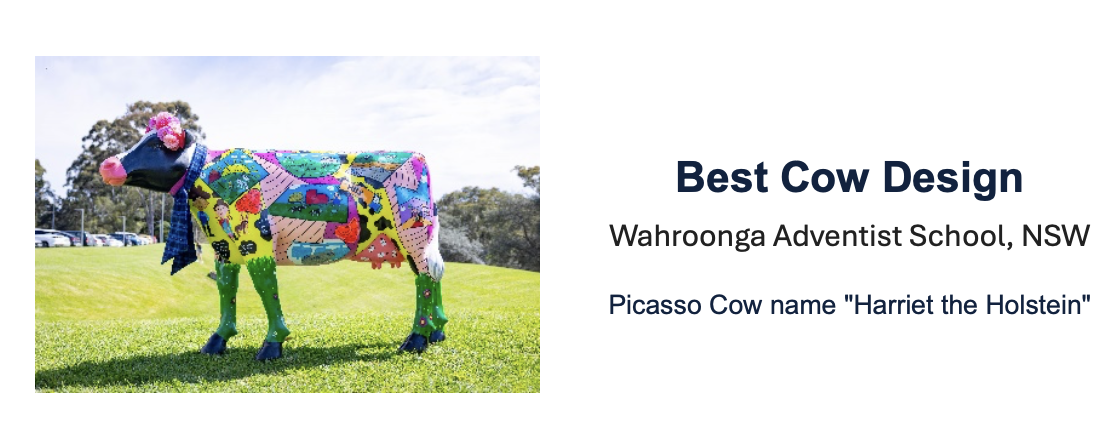 We’re thrilled to share that our cow, “Harriet,” has been awarded Best Cow Design, earning $1000 in prize money for our school!